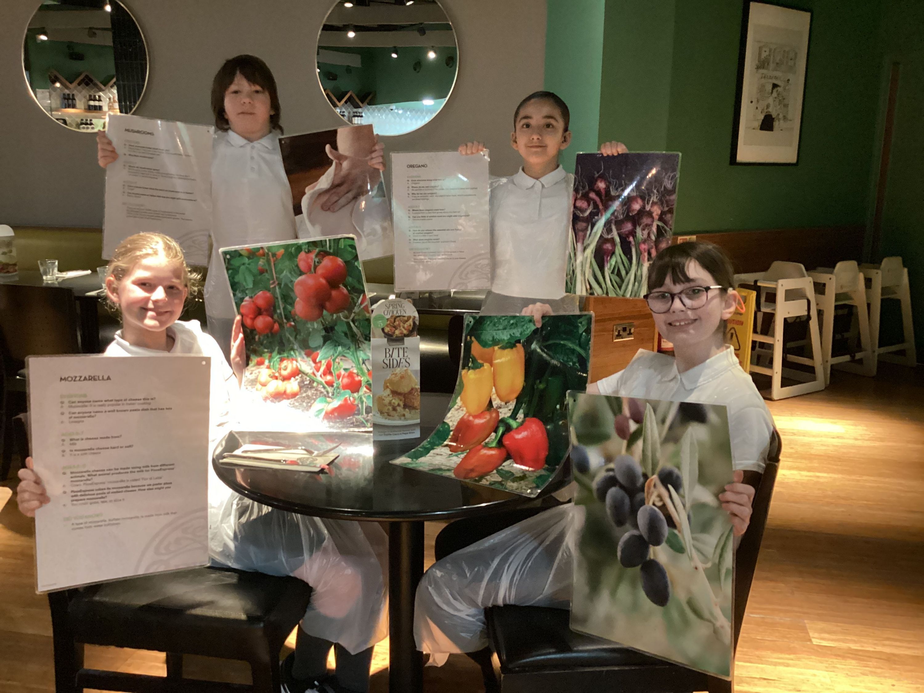 Miss Gee, a Pizza Express employee, quizzed pupils to see if they could recognise each fruit or vegetable.  They were surprised by just how many ingredients are involved in each making a delicious pizza ! It was a fun and educational morning, walking to Lakeside and learning something new. Hopefully they shared their yummy , cheesy pizza with their loved ones at home!