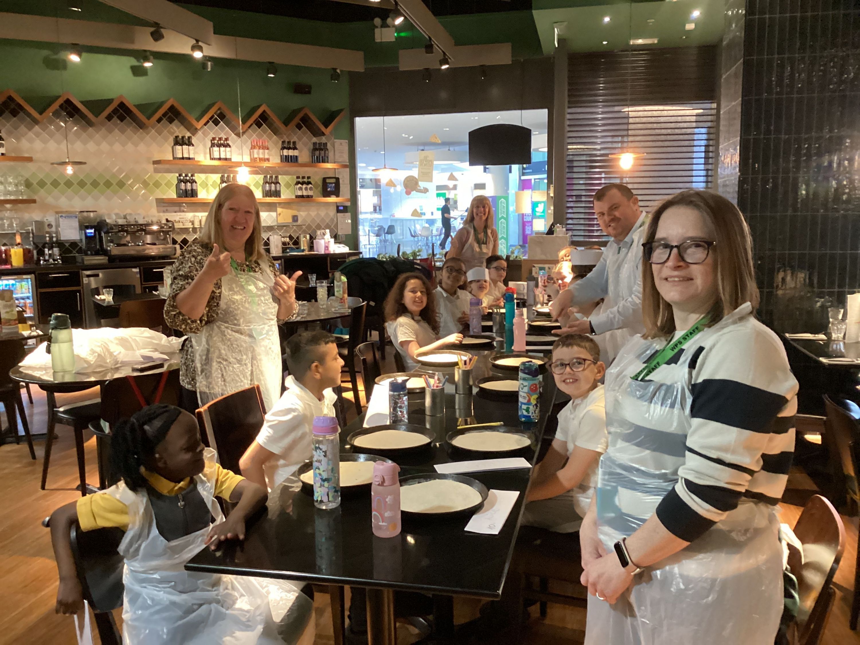 Our deaf pupils and staff  thoroughly enjoyed a visit to Pizza Express this morning and were excited to be in Lakeside before the stores had even opened. They had the opportunity to make their own Margherita pizzas and observe the different ingredients that can be used for bases, sauces, and toppings.