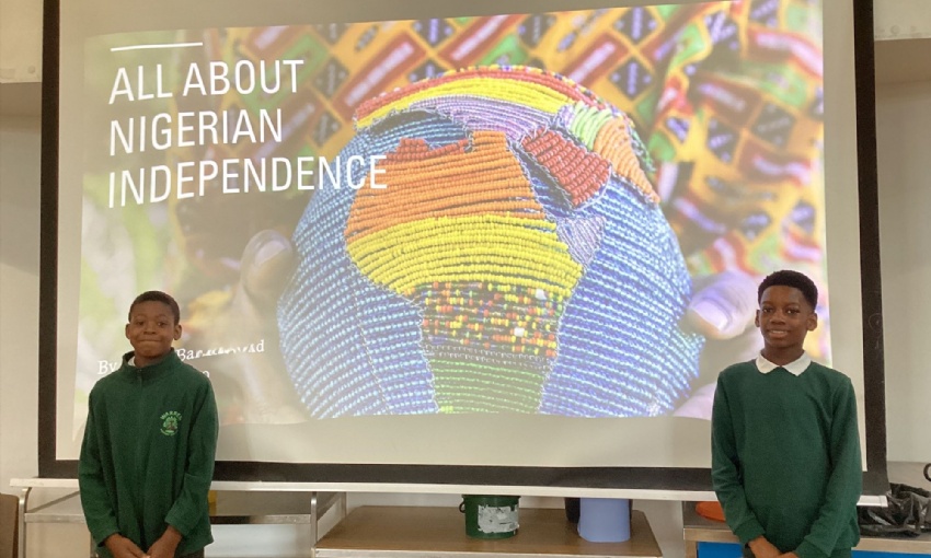 Two year 6 boys did an amazing job presenting their PowerPoint on Nigerian Independence Day during an Assembly to the whole school this week.